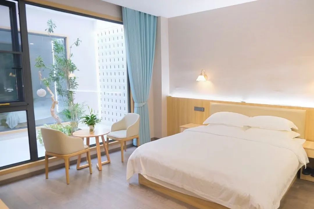 走进民宿,见青葱满院,仔细看来是菜地、花圃。又见绿影倒映的池塘,儿时的回忆缓缓浮现在眼前……民宿配备棋牌室、露台等,来这与朋友喝茶聊天,找回童年的欢乐。